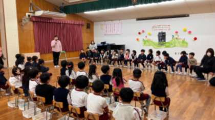 もうすぐ就学する緑組さんへ、年中黄組さんや年少桃組さんが、感謝の気持ちを伝えました。