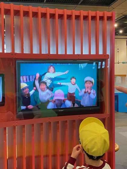 ポーズをとって写真撮影すると、テレビ画面に面白い動画になって映し出されます。画面を見てみんなで大笑いしました。