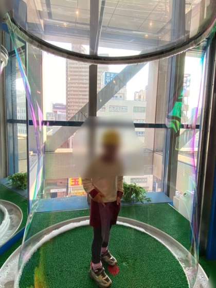 ハンドルや自転車の動きを止めると、髪がバサっと落ちて、みんなで大笑いしました。