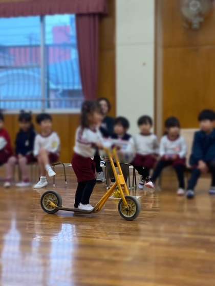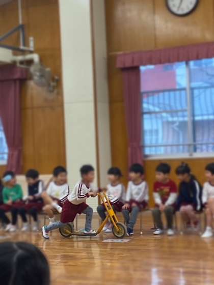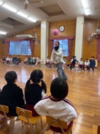 3月生まれの先生は、ソフトバレーボールをポンポン打ち上げながら入場しました。