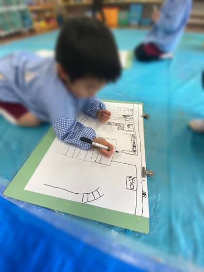 登った梯子、吊り橋を渡っているところ、滑り台、お店屋さんごっこをしたところ…などなど、楽しかったからこそ、こんなふうにかけるのだなと思いました。
