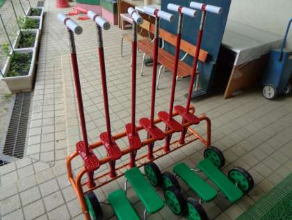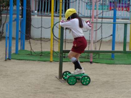 ピカピカの新しい遊具、バランスペダルとホッピングが園庭に登場しました。