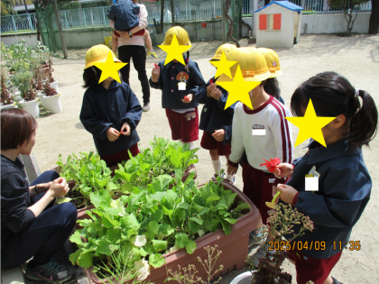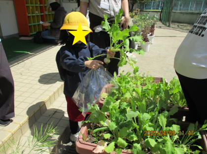 ミニカブラ 公開日 2025/04/09 更新日 2025/04/09 幼稚園日記 昨年度、4歳児黄組が植えたミニカブラが実りました。昨日、緑組になった子どもたちが、収穫しました。今日は、新しい4歳児黄組さんにおすそ分け・・・ おいしく食べてくださいね。 いいね(0)