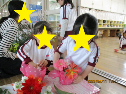 生け花ごっこ 公開日 2025/04/14 更新日 2025/04/14 幼稚園日記 入園式の式場に飾ったお花で、生け花ごっこをしました。 小さな器にオアシスを入れて、思い思いにお花を飾ります。上手に飾ることができて、嬉しそうに見せてくれましたよ。 いいね(0)