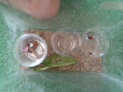 指で触ると丸くなったり、アンテナ(触覚)を動かしながら歩いたりすることに気付きながら、いくら見ても飽きない様子でした。