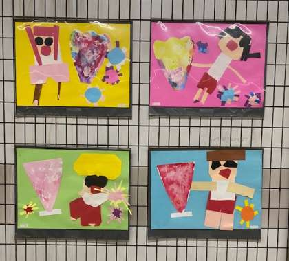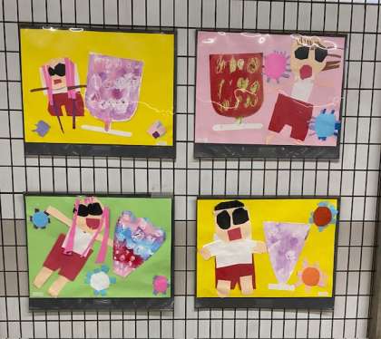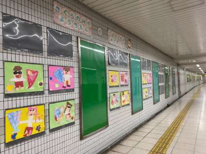 駅の作品リニューアル 公開日 2025/05/19 更新日 2025/05/19 幼稚園日記 大阪メトロ京橋駅の改札付近に、桜宮幼稚園の子どもたちの作品を展示してもらっています。 今日は作品をリニューアルしました。 年中黄組さんが、美味しそうなジュースを飲んでいるところです。 いろいろな形のグラスを型どった画用紙に、パスで氷やフルーツなどをかいて、薄めに溶いた絵の具(ジュース)を塗り(入れ)ました。 ぜひ、見に行ってくださいね!! いいね(0)