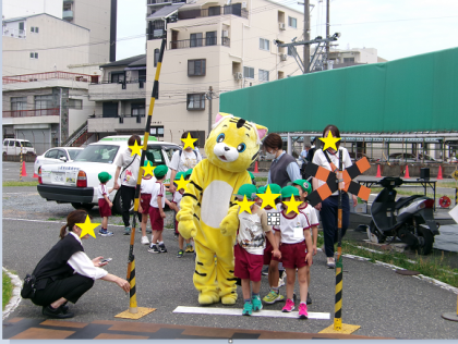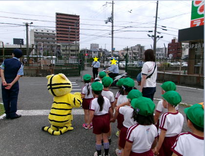 都島自動車学校で交通安全教室2 公開日 2025/06/09 更新日 2025/06/09 幼稚園日記 トラ吉くんがやって来て、一緒に信号を渡ったり、安全に道路を歩いたりしました。みんな上手にできました。 いいね(0)