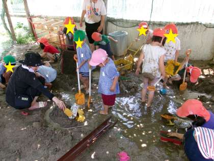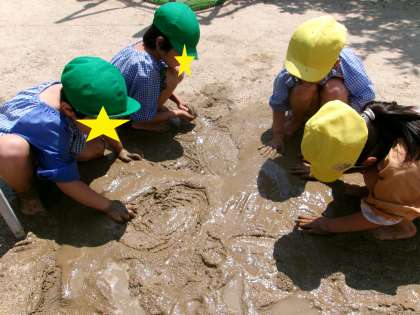 ちどり保育園のお友達と泥んこ遊び 公開日 2025/06/30 更新日 2025/06/30 幼稚園日記 ちどり保育園5歳児のお友達が桜宮幼稚園に遊びに来てくれて、みんなで一緒に泥んこ遊びをしました。砂場で大きなプールをつくったり、土山の上から水を流したり、プルンプルンの泥で感触を楽しんだり、お団子をつくったり・・・ 子どもたちは思う存分、水や泥の心地よさを味わっていましたよ。 この時期にしかできない遊びを存分に楽しみました!! いいね(0)