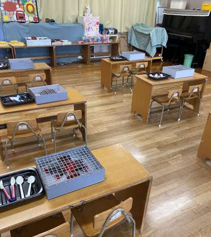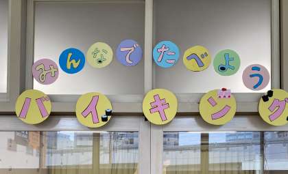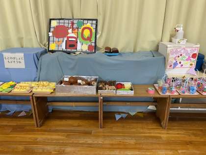バーベキューはいろいろなご馳走を自分で選んで焼くことができます。ジュースは年少桃組さんがつくったよ。