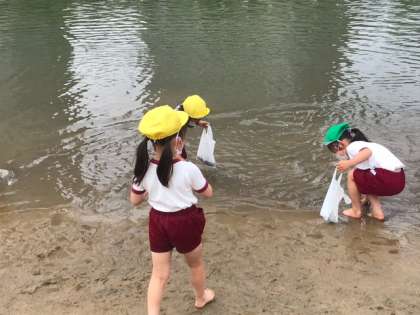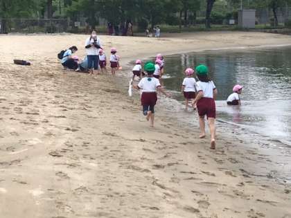 早速水の冷たさやサラサラの砂の感触を楽しんでいます!