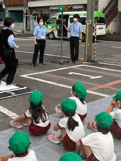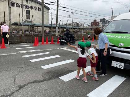 5歳児緑組が都島自動車学校で交通安全指導を受けました。