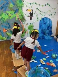 遊戯室のジャングルではアスレチックやさかなつりに夢中!