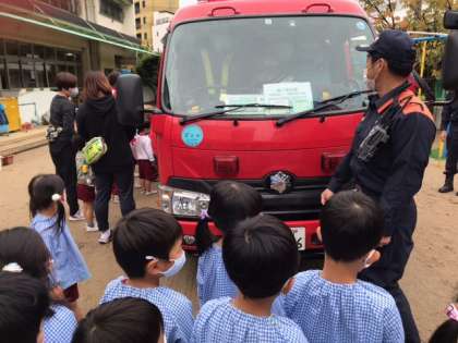 11月1日に幼稚園が火事になる想定で避難訓練をしました。