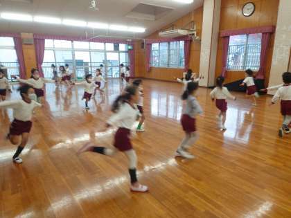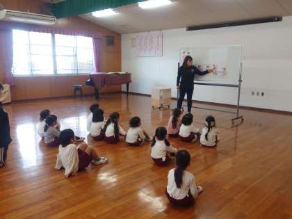 良い姿勢でいることの大切さを指導した後に、体幹を強くする事を目的とした運動遊びをしました。
