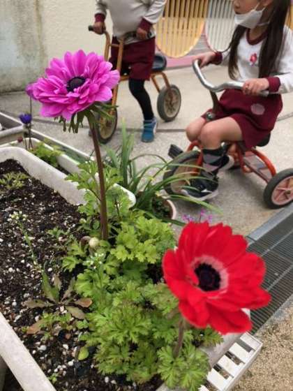 小さな芽が出たことやつぼみがついたこともにも気づいている子供たちがたくさんいました自分で植えると観察するのにも力が入るようです