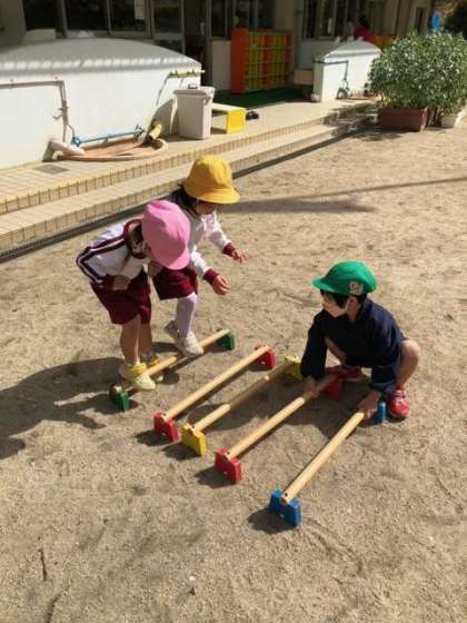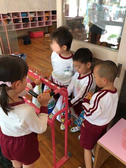 用意が終わり「一緒に遊ぼう」と遊びに誘ってくれ、年少児のペースに合わせて遊んでくれます