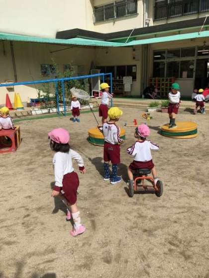 たくさん園庭で遊んで、あっという間にお帰りの時間に。