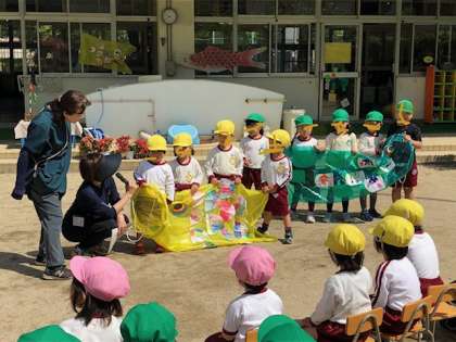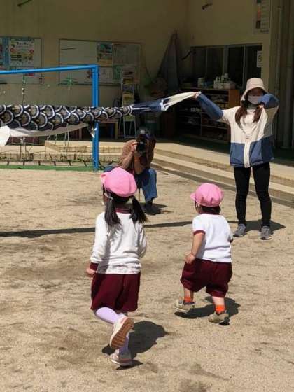 雲一つない青空の下、5月2日園庭でこどもの日の集いをしました。