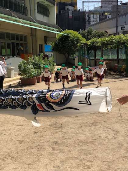 鯉のぼりが上がったあとは、身体を動かして遊びます。