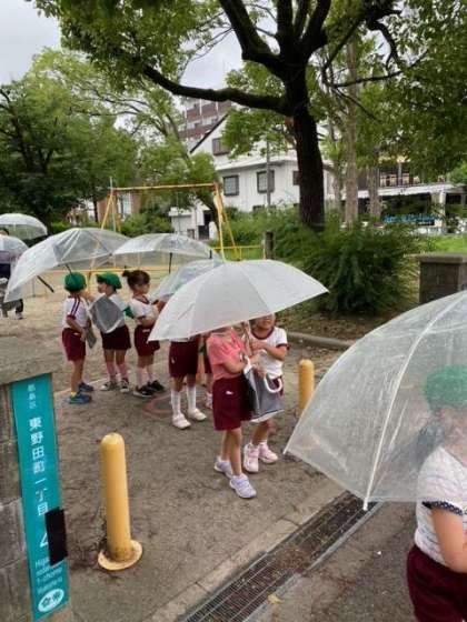 雨が降っていましたが、傘をさして歩いて行きました。
