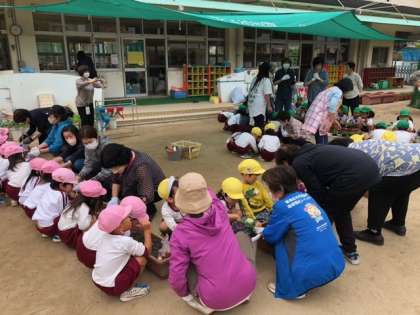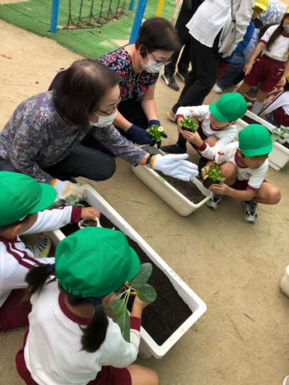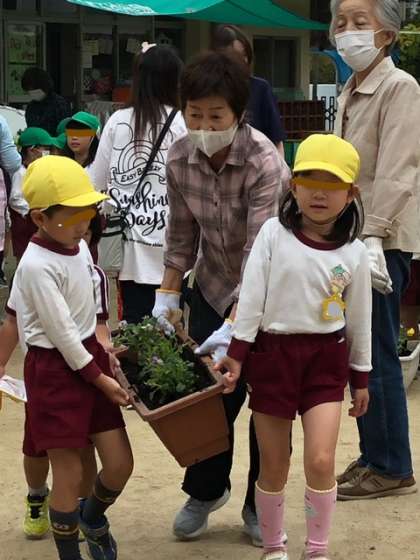 いきいき教室 公開日 2023/11/06 更新日 2023/11/06 お知らせ 今日は「いきいき教室」がありました。 地域の方と一緒に花の苗や球根、野菜の種を植えました。 子どもたちは球根や花の苗、野菜の種の形や色に興味いっぱいです。 「こっちが下になるように植えてね」「やさしく土をかぶせてね」と地域の方に教えていただき一緒に植えました。 幼稚園のお庭が花や野菜のプランターでとても賑やかになりました。 「大きくなあれ」と、これから育つのを楽しみにしている子どもたちです。 いいね(0)