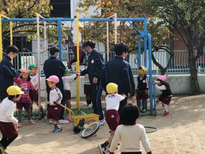 地域の桜宮中学校の職業体験で、2年生の生徒9名が幼稚園に来てくれました。