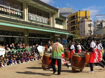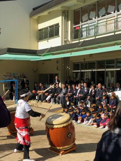 創立100周年記念式典(その2) 公開日 2023/11/28 更新日 2023/11/28 お知らせ 式典のあと、園庭に移動して地域で活動されている櫻太鼓のみなさんによる和太鼓の演奏を聞きました。 力強い和太鼓の音にびっくりした子ども達ですが、じっと演奏に聞き入って、終わった後、「もう一回!もう一回!」とアンコール。 たくさんの方にお祝いしていただいた幼稚園。 いつまでも楽しい幼稚園でありますように、と願うばかりです。 いいね(0)