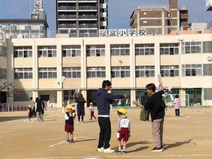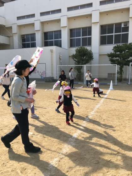 凧あげ(年中&年少) 公開日 2023/12/20 更新日 2023/12/20 お知らせ 桜宮小学校の校庭をお借りして凧あげにいきました。 幼稚園の庭よりもずっと広い校庭で年中さんと年少さんが親子でたこをあげました。 自分で描いた凧をお家の人に持ってもらって全力で走りました。 凧が上がると嬉しくていっぱい走りました。 お家の人も子どもと一緒に全力で走ってくださっていました。 お疲れさまでした。 いいね(0)