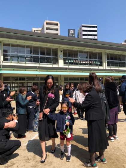 式のあとは晴れ晴れとした笑顔で花道を通り,幼稚園を旅立って行きました。