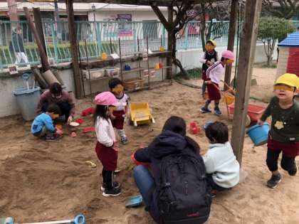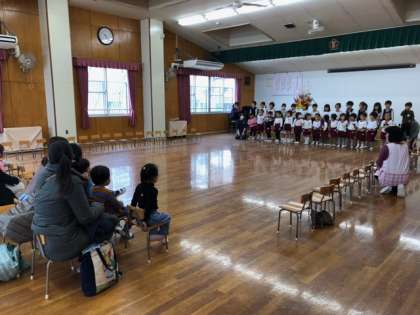 園庭で遊んだあと、場所を遊戯室に移しました。