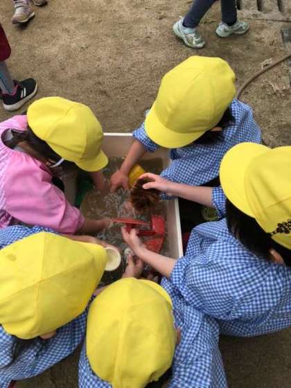 おもちゃ、きれいにしたよ 公開日 2024/03/25 更新日 2024/03/25 お知らせ 今年度もそろそろおしまい。みんなで砂場のおもちゃをきれいに洗いました。 足洗い場で泥を落とし、ぬるま湯の入った桶で仕上げ洗いをしました。 3月には珍しく雪がチラチラするほどの寒い日でしたが、子どもたちは力を合わせておもちゃを洗いました。 おかげでおもちゃはあっという間にピカピカになりました。 いいね(0)