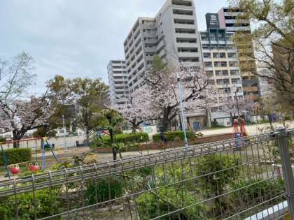 幼稚園と公園の桜が、美しく咲きほこり見ごろを迎えています。
