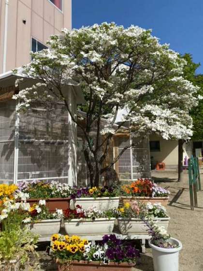 ちなみに、答えは「ハナミズキ」です。その近くにはツツジも満開です。