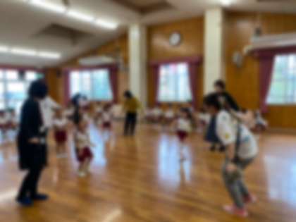 お家の人と一緒に動物体操をしたり、緑組さんの「おやつたーべよ」の遊びをしたりして、面白かったですね。