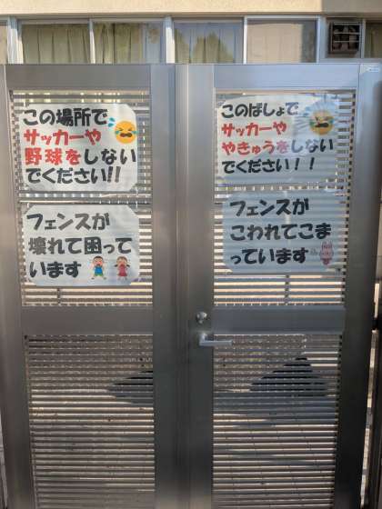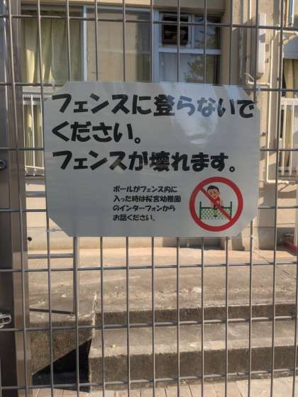 フェンスの工事をしました 公開日 2025/07/24 更新日 2025/07/24 幼稚園日記 公園側のフェンスにサッカーボールや野球のボールが当たってフェンスが歪んで困っていました。フェンスによじ登る人もいるようです… とうとうフェンスが歪んで壊れてしまったので、工事をして新しくしました。 ボールをぶつけて遊ばないよう、ご協力ください。よろしくお願いいたします。 いいね(0)