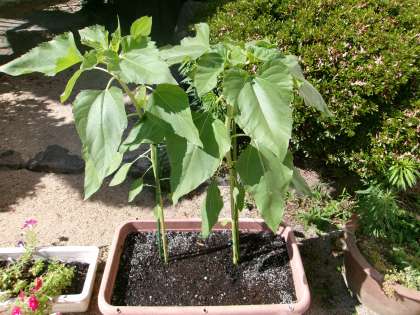 ヒマワリも、背が高くなってきましたよ。もう少ししたら、お花が咲くかな…楽しみです。
