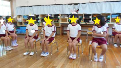 そこで、養護教諭が紙皿の帽子を見せてくれ「誰が長く頭の上に載せられるかゲームをしよう」ということになり、順番にしてみると…