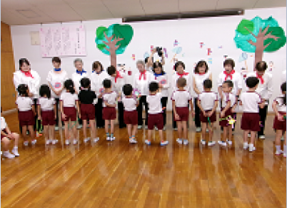 桜宮地域 厚生保護女性会の『コールロゼ』さんが来てくださり、素敵な歌を聴かせてくださいました。子どもたちが知っている歌も歌ってくださり、一緒に歌うところもありました。最後には、会場全員で「とんぼのめがね」を歌いました。