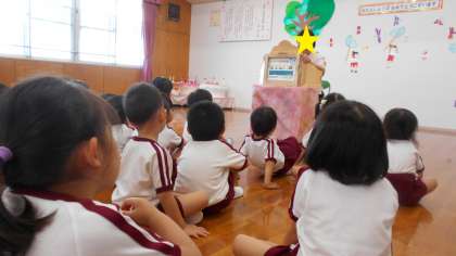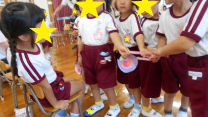 今日は9月生まれのお友達の誕生会でした。お休みしていた7月生まれのお友達も一緒にお祝いしました。