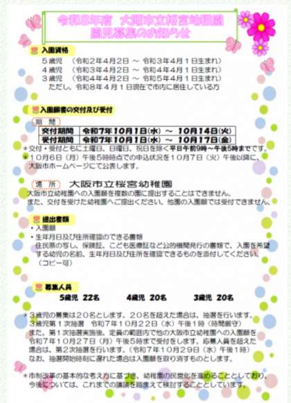 令和8年度 入園願書 交付・受付中 公開日 2025/10/08 更新日 2025/10/08 お知らせ 令和8年度入園願書 交付・受付中です。 お早めに幼稚園へお越しください。お待ちしております。 いいね(0)