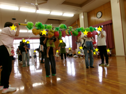 先日の運動会で園児がした競技や演技を、未就園児さんもしました。
