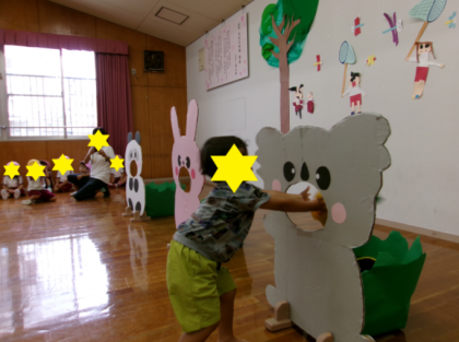 未就園児さんも、ウサギさんやコアラさんのお口に、上手に果物を食べさせてあげていましたよ。