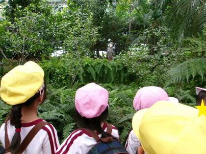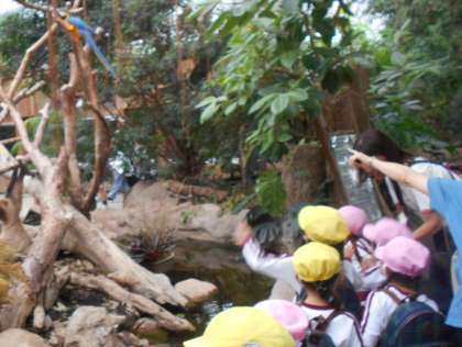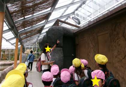園外保育(神戸動物王国)6 公開日 2025/10/21 更新日 2025/10/21 幼稚園日記 年中黄組と年少桃組は手をつないで動物たちを見て回りました。 鳥のエリアでは、遠くに鳥がいたと思えばすぐ横にいたり、上を見上げると屋根の上に沢山いたり。ハシビロコウも幼稚園の園児たちをじっと見ていました。「動いているところを見られたらラッキーなんだよ!」と教えてくれました。少し動いているところを見られたね。 いいね(0)