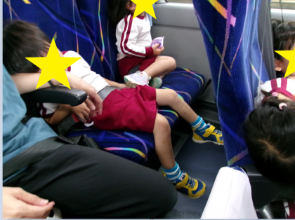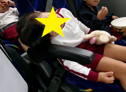 帰りのバスは、数名の子どもたちがこてんと寝てしまいました。