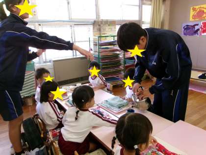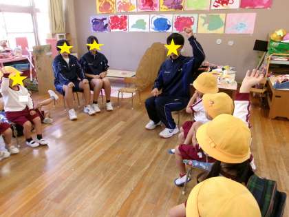 桜宮中学校 職業体験 桃組 公開日 2025/10/24 更新日 2025/10/24 幼稚園日記 今日から2日間、桜宮中学校から8名の生徒が職業体験に来ました。 登園時は、緊張して園児に声をかけるのをためらっているようでしたが、外遊びをする頃には打ち解けて、園児とよく遊んでくれました。 手遊びをしているときに「先生役をしたい人・・・」と聞くと、中学生が手を挙げてくれ、先生のように前に立って手遊びをしてくれました。今日一日、園児とやさしく関わってくれて、とても助かりました。 いいね(0)