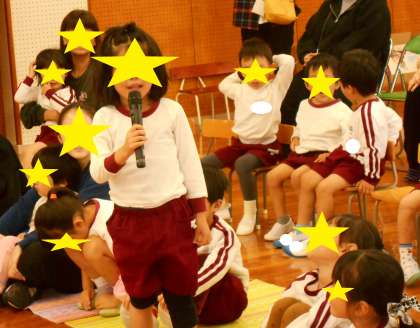 背中をピンと伸ばしてまっすぐ立ち、大きな口を開けて歌う声は、年中黄組・年少桃組の心に響いていました。