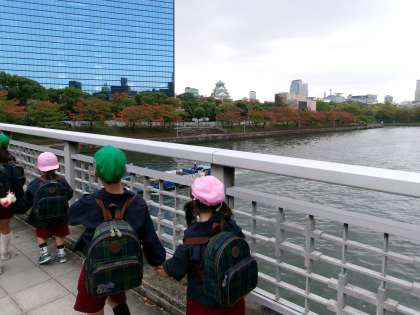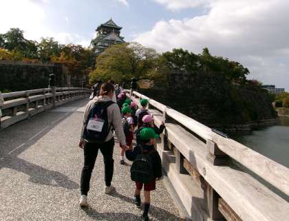 遠くに見えていた大阪城が、近付いてくると、思わず「わ〜、近い。お城ってめっちゃでかいんやなぁ!」という声があがっていましたよ。