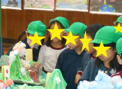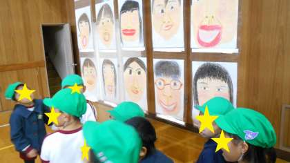 年長緑組は桜宮小学校の作品展を見に、小学校へ行ってきました。