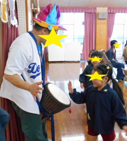 アフリカの太鼓の先生が帰られるときには「車に全部の太鼓、入るかなぁ?」と心配そうに見つめたり、「持ってあげよか?」と声をかけたりしていました。