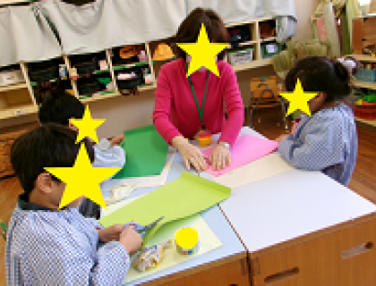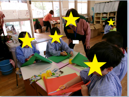 緑組は、地域の方が、サザエの貝殻を持って来てくださり、絵の具で色を塗りました。(写真がなくてごめんなさい)